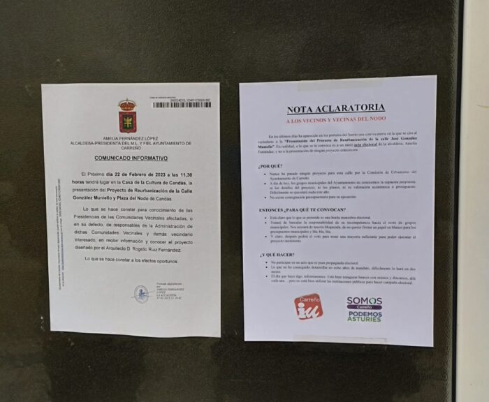 El grupo municipal de SOMOS Carreño- PODEMOS advierte a los vecinos y vecinas del barrio del Nodo que la comunicación que ha aparecido en sus portales en los últimos días,…