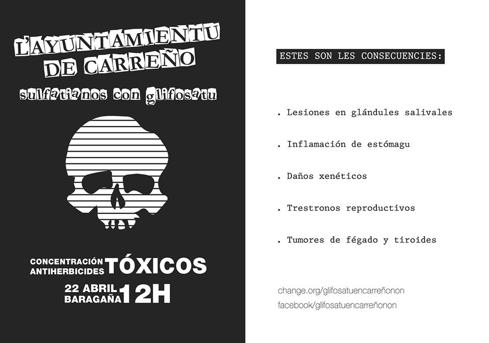 El ayuntamientu de Carreño ta sulfatiandonos con GLIFOSATU. vamos a demostrai el nuesu rechazu al usu de herbicides tóxicos que atenten escontra la salú de humanos y animales.